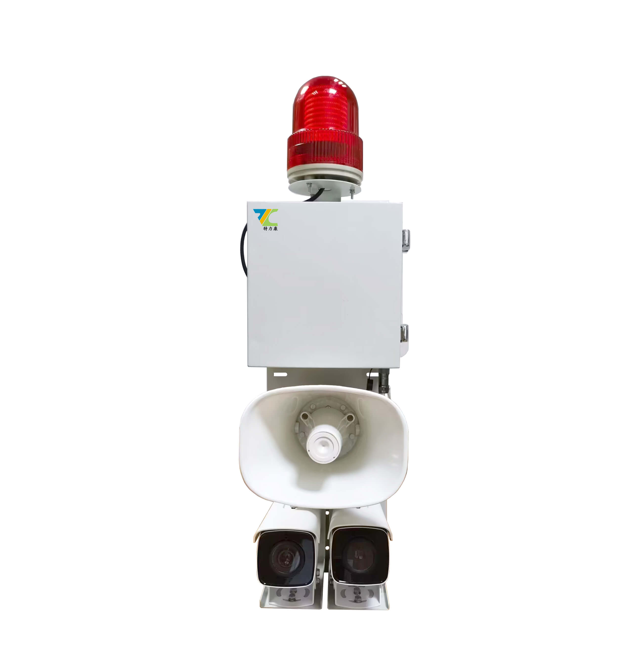 鐳射限高防外破預(yù)警裝置安裝時(shí),使鐳射光線在安全高度與導(dǎo)線平行,在光照條件不足時(shí),將發(fā)射鐳射光,以實(shí)現(xiàn)對(duì)線下超高機(jī)械施工、線路通道、無(wú)關(guān)人員靠近線路等起到實(shí)時(shí)警示的作用。另可通過(guò)激光雷達(dá)探測(cè)實(shí)時(shí)分析越線情況,并在探測(cè)到越線隱患時(shí),立即發(fā)出語(yǔ)音告警及爆閃警示,以避免外破隱患的發(fā)生。