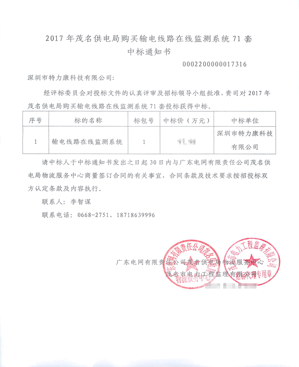 特力康中標(biāo)國(guó)網(wǎng)黑龍江送變電工程公司的2024年度第18次物資類競(jìng)爭(zhēng)性談判采購(gòu)項(xiàng)目——慶陽(yáng)驅(qū)鳥(niǎo)器物資框 特力康中標(biāo)國(guó)網(wǎng)甘肅省電力公司省管產(chǎn)業(yè)單位2024年第五次物資競(jìng)爭(zhēng)性談判授權(quán)采購(gòu)項(xiàng)目 中標(biāo)喜訊:深圳市特力康科技有限公司成功入圍許繼集團(tuán)綜合能源公司輸電線路視頻在線監(jiān)測(cè)裝置模塊集采項(xiàng)目 中標(biāo)喜訊:特力康成功中標(biāo)國(guó)網(wǎng)重慶市電力公司渝中一片區(qū)項(xiàng)目 特力康成功中標(biāo)國(guó)網(wǎng)天津市電力公司2024年第二次?物?資招標(biāo)項(xiàng)目 特力康中標(biāo)國(guó)網(wǎng)安徽省電力有限公司蕪湖供電公司2024年3月非物質(zhì)采購(gòu)項(xiàng)目 風(fēng)雪中的 “防冰哨兵”:內(nèi)蒙古電力用特力康監(jiān)測(cè)系統(tǒng)筑牢覆冰防線 雙軸感知護(hù)塔穩(wěn):山西電力用特力康裝置破解采空區(qū)傾斜難題 江西電力裝上 “智能防鳥(niǎo)衛(wèi)士”—— 特力康綜合激光驅(qū)鳥(niǎo)器破解湖區(qū)變電站鳥(niǎo)害難題 破解巡檢難題:貴州電力用特力康 AI 微拍裝置,精準(zhǔn)捕捉線路隱性隱患 精準(zhǔn)捕捉 “微氣象”:浙江電力用特力康預(yù)警系統(tǒng)筑牢電網(wǎng)氣候防線 守護(hù) “電力咽喉”:湖南電力投用百套特力康三跨 4G 監(jiān)控球,筑牢安全防線 貴州電力裝特力康電網(wǎng)架空線路覆冰監(jiān)測(cè)系統(tǒng),精準(zhǔn)防冰保電網(wǎng)過(guò)冬? 寧夏配電線路安裝了我司防外破電子化智能警示牌